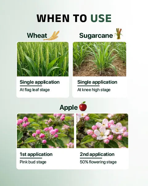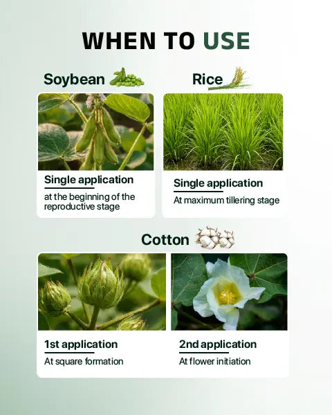 1st application - pink bud stage, 2nd application - 50% flowering stage |