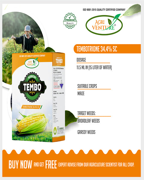 Tembotrione 34.4% SC is a selective, post-emergence herbicide used for controlling broadleaf and grassy weeds in maize (corn) crops by inhibiting the HPPD enzyme, which disrupts the synthesis of vital plant pigments.